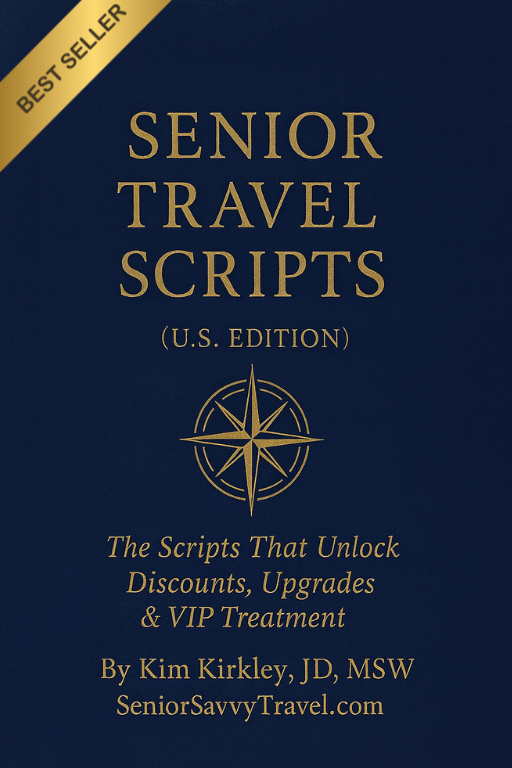 VIP perks, hidden benefits, and word-for-word scripts for travelers 60+ — plus 3 free bonuses. This 71-page guide makes air travel calm, confident, and easy for seniors and the adult children who support them.